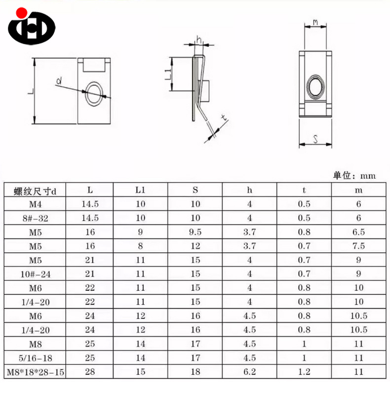 Углеродная стальная гайка U - инновационный крепеж, который сочетает в себе функции гайки и защелкивающейся пружины. Обычно он изготовлен из металлического материала и имеет гайку с внутренними резьбами и пружинной структурой. Этот уникальный дизайн позволяет гайке Snap Spring плотно зажимать болт после установки, обеспечивая дополнительную силу блокировки, эффективно предотвращая ослабление гайки и обеспечивая стабильность соединения.