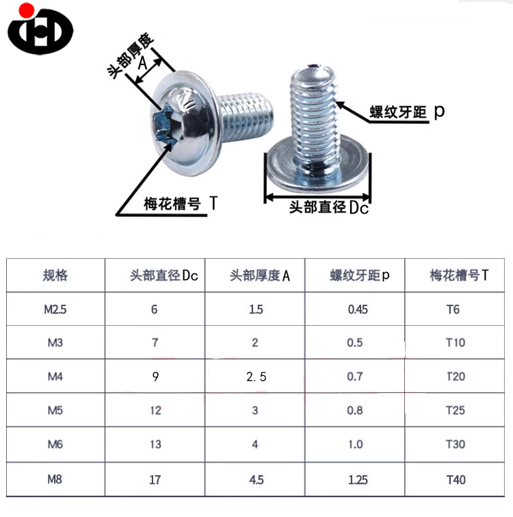 Троксная грабительская конструкция головки кастрюли с болтами Pad Torx является основной моменной. По сравнению с традиционными винтами с поперечной канавкой или прямыми винтами канавки, Plum Trox Groave обладает лучшей производительностью против скольжения. Во время установки инструмент и винтовая канавка могут соответствовать более плотно, эффективно уменьшая такие проблемы, как повреждение винта или нестабильная установка, вызванная скольжением, значительно повышая стабильность соединения.