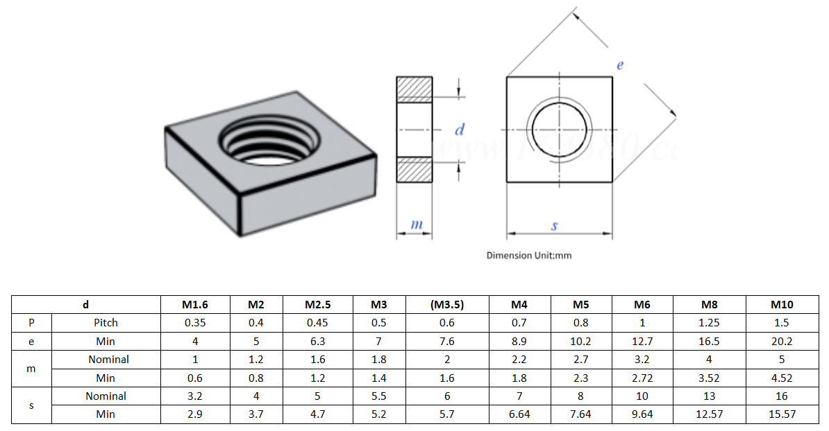 Этот продукт представляет собой квадратную тонкую гайку немецкого стандарта, изготовленную из углеродистой стали Q195, соответствующую стандарту уровня B DIN 562-2013. Он имеет тонкую толщину и компактную структуру, подходящую для случаев с ограниченным пространством для установки. В технических характеристиках изделия указаны размеры M1,6–M10 с четырьмя квадратными углами для облегчения установки. Он широко используется в сценариях соединения со строгими требованиями к толщине, таких как детали из листового металла, шкафы шасси и обычные конструктивные компоненты.