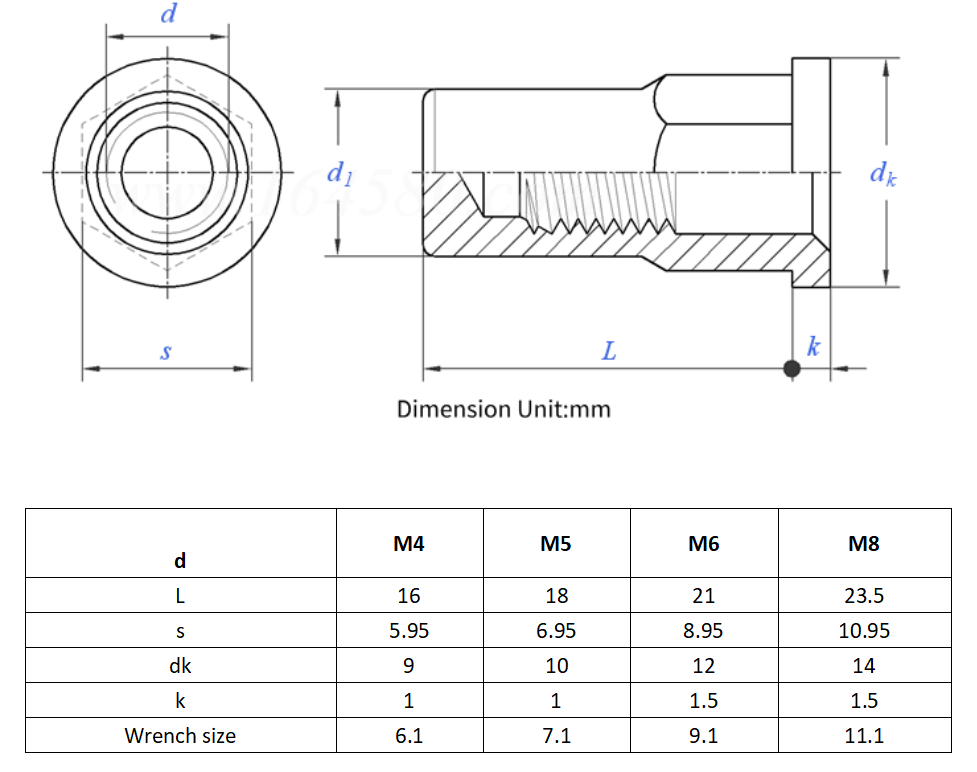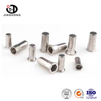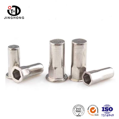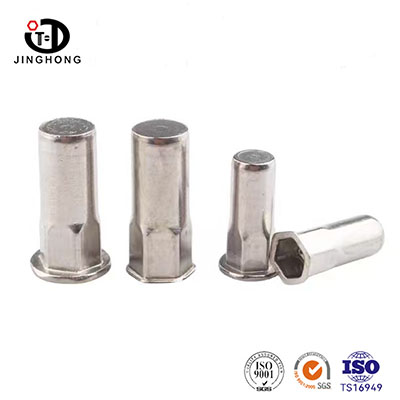 Изготовлен из нержавеющей стали 304, обеспечивающей отличную коррозионную стойкость, стойкость к окислению и гигиенические свойства. Полушестиугольная конструкция эффективно противостоит вращению после установки, обеспечивая надежную фиксирующую силу. Совместима со стандартными заклепочными инструментами, что обеспечивает надежную установку с одной стороны заготовки. Обычно поставляется с натуральной отделкой (оригинал из нержавеющей стали), также может быть пассивирован или обработан по мере необходимости для повышения коррозионной стойкости. Доступны стандартные размеры резьбы. Продукция соответствует соответствующим национальным и отраслевым стандартам, обеспечивая стабильное качество. Подходит для соединения различных материалов, таких как тонкие листы и профили.