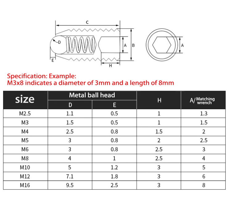 Основной момент этого винта с наборами шар для нержавеющей стали - это пружинная конструкция шарика. Шарольная головка может быть втянута и вытянута пружиной, а затем быстро заперта в положении. Это значительно повышает эффективность установки и обеспечивает прочное соединение.