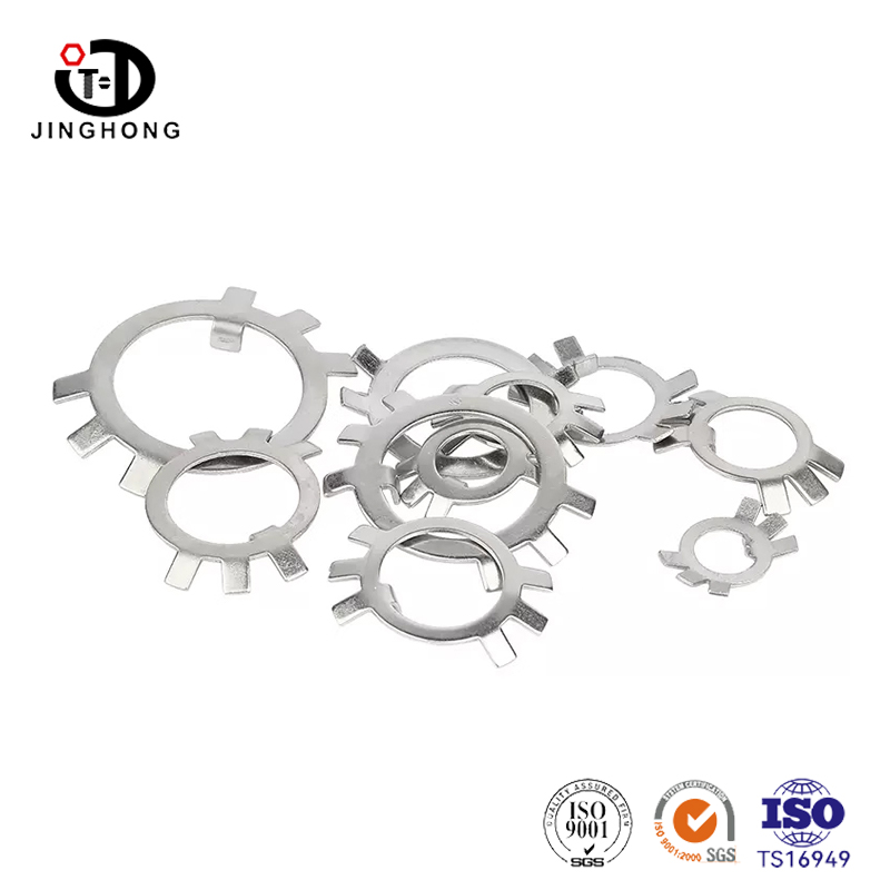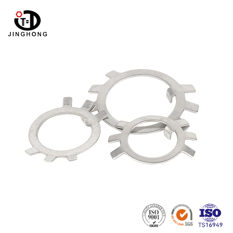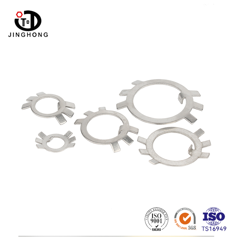 Удерживающая стиральная машина из нержавеющей стали для круглых гайков является аксессуаром для крепления, который специально используется для предотвращения ослабления гаек. Удерживающая стиральная машина из нержавеющей стали для круглых гайков очень устойчива к коррозии и имеет очень высокую прочность. Замороженный внешний край удерживающей стиральной машины из нержавеющей стали для круглых гайков разрезается на поверхность, к которой подключена сборка, и вместе с круглой гайкой предотвращает ослабление из -за вибрации или других сил.