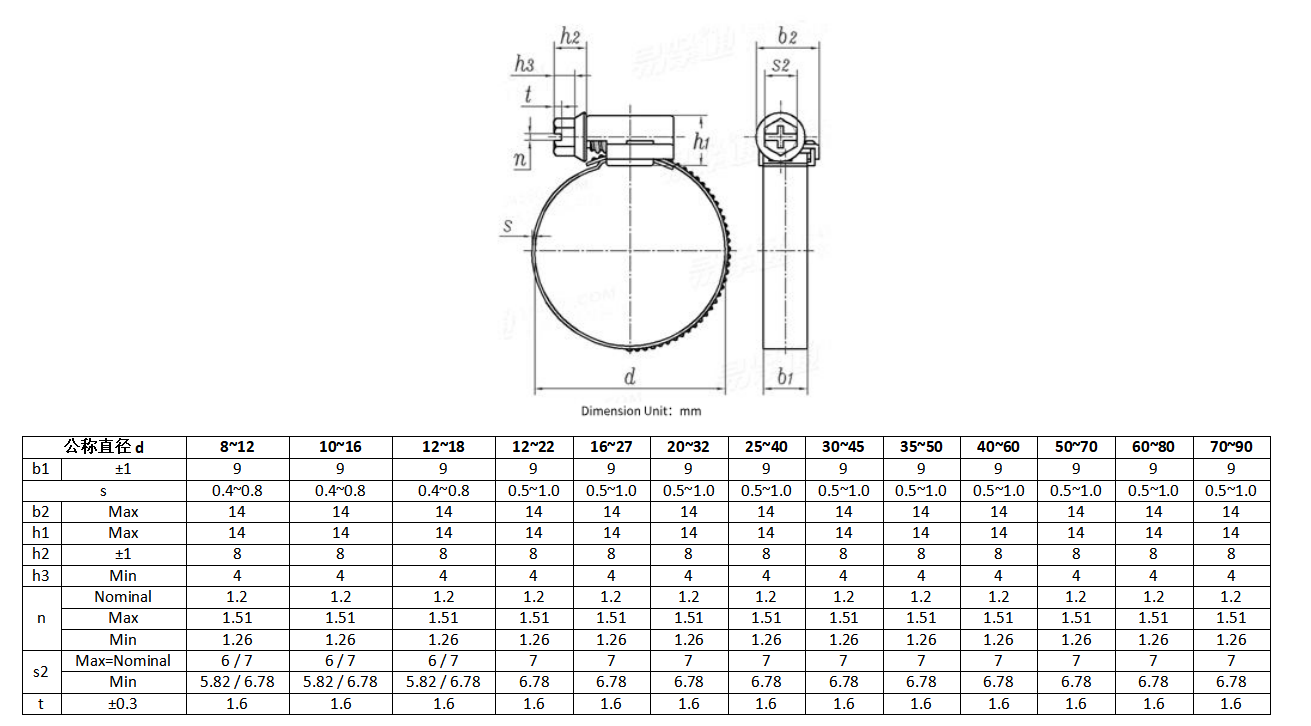Этот продукт представляет собой зажим с червячным приводом, соответствующий немецкому стандарту DIN 3017-1 и изготовленный из оцинкованного железа. Зажим с червячным приводом имеет высокую пропускную способность и прочность, его можно быстро затянуть и ослабить путем вращения червяка. Он имеет хорошие характеристики уплотнения и равномерную силу зажима. Широко используется для соединения и фиксации мягких и твердых труб, таких как автомобильные выхлопные системы, промышленные трубопроводы, водопроводные и нефтяные трубы.